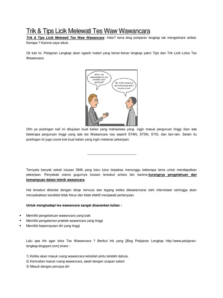 Untuk bisa diterima, seorang calon murid harus mendapat "vote" Pendidikan saya dimulai dari sdn baron, mi mishbahul ulum di baron, smpn dukun, sman sidayu gresik, s1 pend. Video kali ini bel matematika melakukan pembahasan soal matematika tes masuk sma labschool jakarta terbaru tahun pelajaran 2020 2021. Unduh sebagai docx, pdf, txt atau baca online dari scribd. Sains fisika unesa surabaya (dr). Soal tes wawancara kpps 2020soal tes wawancara pps pilkada 2020 contoh soal pps 2020 bocoran soal. Tandai sebagai konten tidak pantas. Demikianlah pembahasan yang dapat kami sampaikan mengenai contoh soal tes masuk kerja di koperasi. Seleksi didasarkan pada prestasi akademik calon mahasiswa, tanpa tes tertulis. Kadang tesnya bukan hanya menjawab soal tertulis, lho, tapi juga berupa wawancara, praktik, hingga bikin esai. Contoh tes wawancara masuk smk yakni tes wawancara tes kesehatan dan tes tertulis. Tahapan tesnya lebih kompleks, dan tuntutan seleksinya lebih berat. Mereka bisa mengikuti seleksi dengan memilih 3 program studi jenjang s1 atau/ dan diploma.