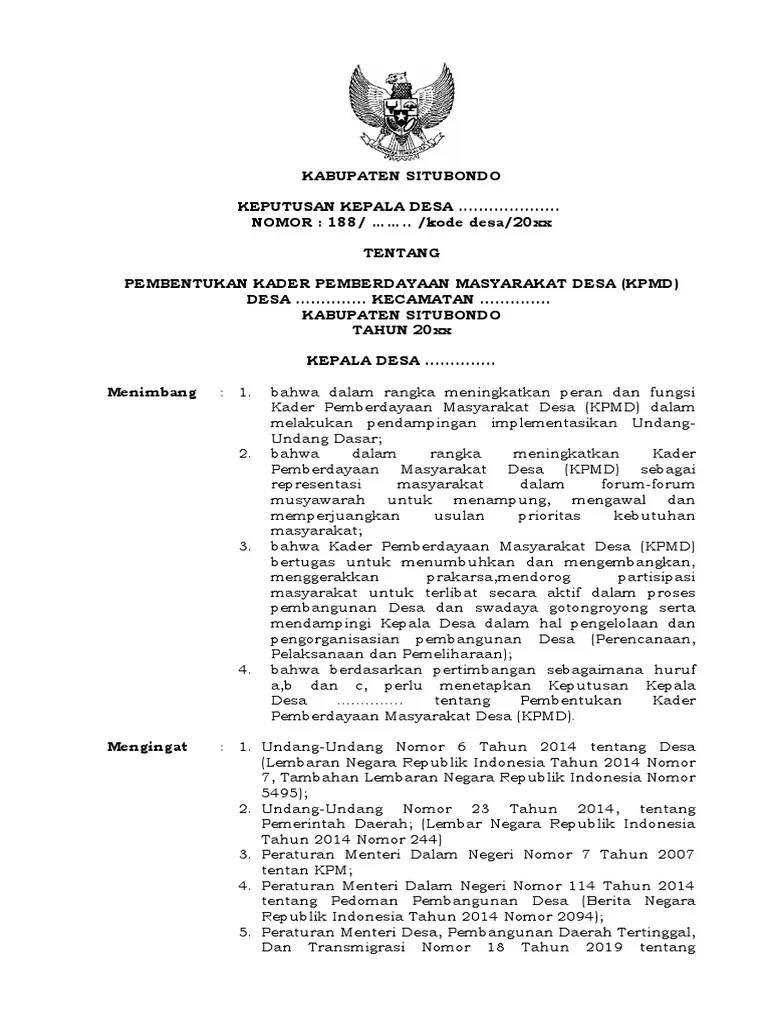 07, 22 februari 2016, pengangkatan bendaharawan desa kepala desa pejambon, download. Kpmg international provides no client services and is a swiss entity with. Mendampingi kepala desa dalam hal pengorganisasian pembangunan desa (identifikasi pelaksanaan musdus dan musdes rkpdes . Contoh sk kpmd (kader pemberdayaan masyarakat desa) 2017. · meningkatkan kepedulian serta pemahaman masyarakat dan pemerintah desa dalam penanganan . Nomor, tanggal, sk tentang, download. Tugas kpmd oktober s.d desember 2016. Meningkatkan kapasitas dan kualitas sumber daya manusia di perdesaan. Peraturan rektor universitas jambi nomor 06 tahun 2016 tentang kode etik dosen, tenaga kependidikan dan . Pemberdayaan masyarakat desa (kpmd), yang ditugaskan dengan. Peraturan gubernur jawa tengah nomor 48 tahun 2016 tentang pedoman pemberian bantuan keuangan pada pemerintah desa provinsi jawa tengah. Januari 2016 tentang penetapan kader Wonogiri nomor 08 tahun 2016 tentang pembentukan lembaga kemsyarakatan desa.